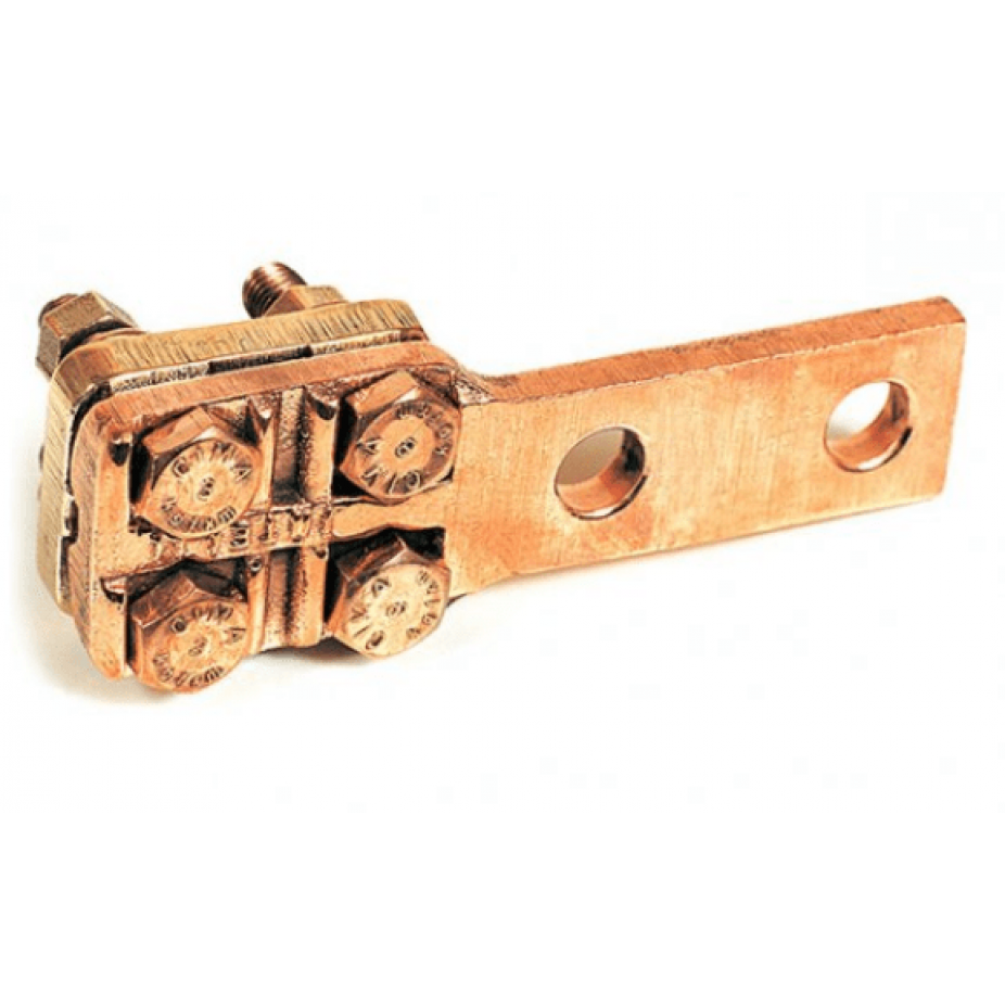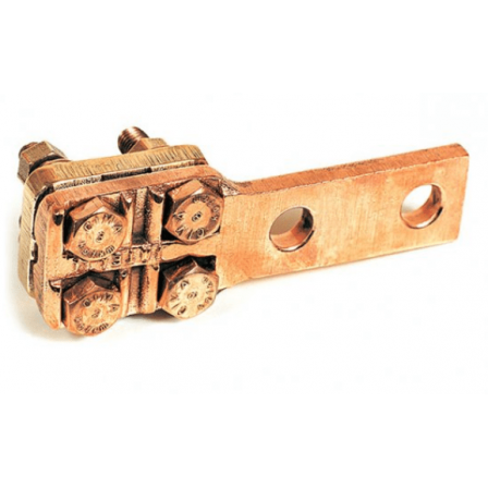 Conexão por aperto. Alta condutividade elétrica. Sapata com dois ou quatro furos padrão NEMA. Possui ressaltos que travam a cabeça dos parafusos.